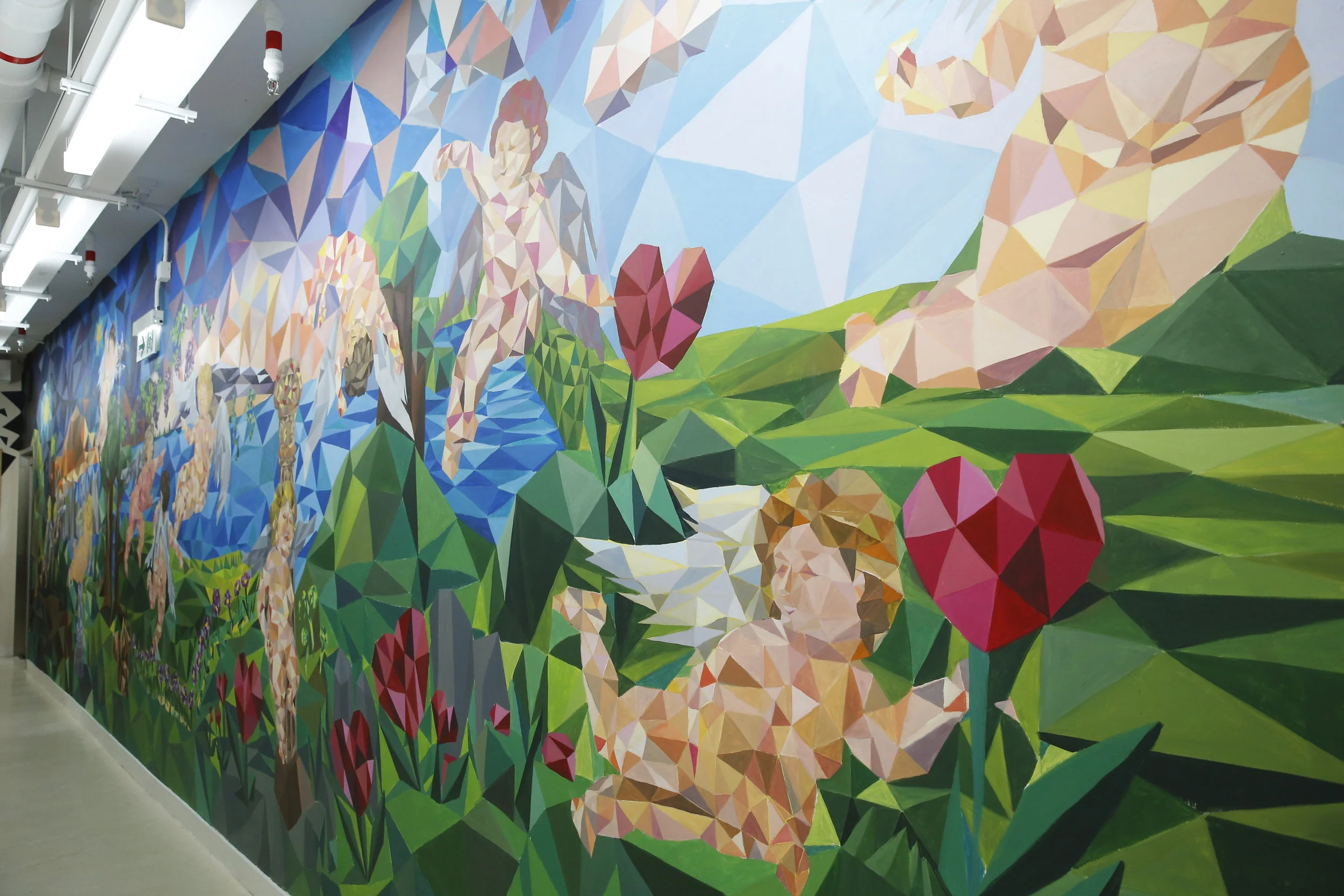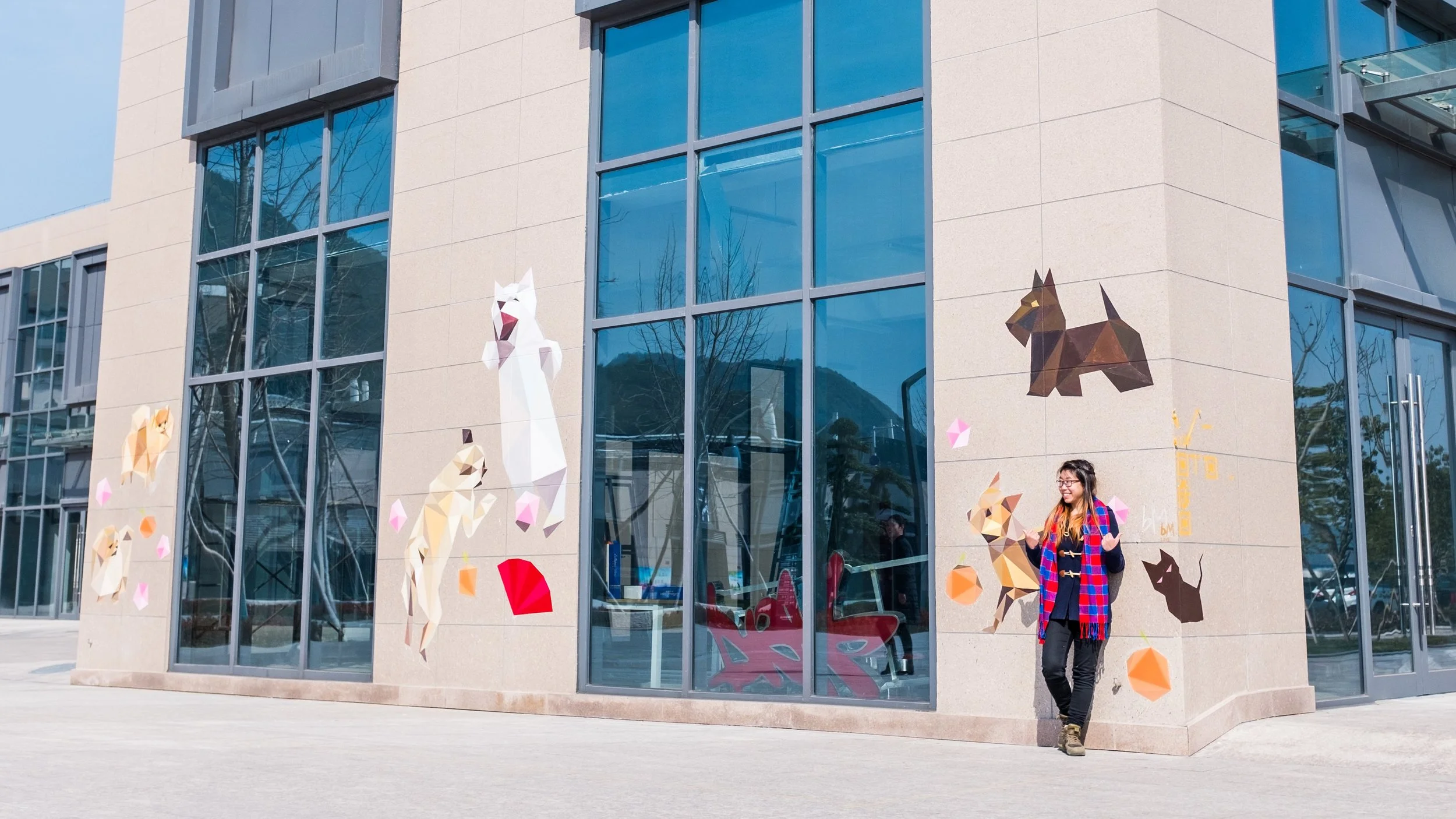“Dance for the Year of Dog” is a mural painting commissioned by 尚都里(寧海)置業有限公司 to celebrate the Chinese New Year. The work demonstrates the low poly design with dogs of different species dancing around. Inspired by one of the scenes in the musical Cats - The Awefull Battle of the Pekes and the Pollicles, the playful work brings out the joy to share with the residents in Ninghai for the New Year celebration.